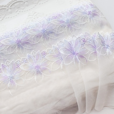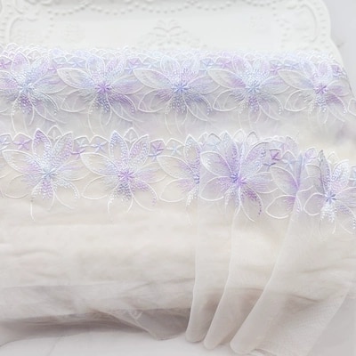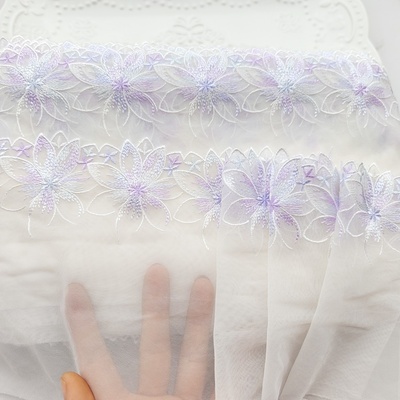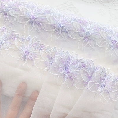 1 ярд, 17 см, широкая светло-фиолетовая Мягкая сетчатая вышивка, кружевная отделка, Аксессуары для платья, кружевная ткань, швейные поделки, кукольный материал