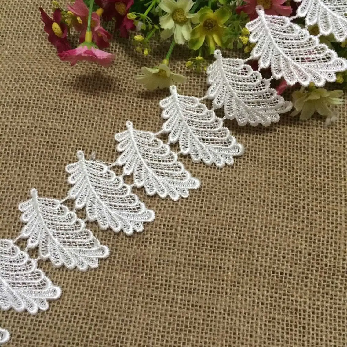 1 ярд, 5,5 см, широкая белая вышивка, кружево с растворимыми листьями, кружева, отделка, Цветочная кружевная ткань для рукоделия, швейная лента, аксессуары