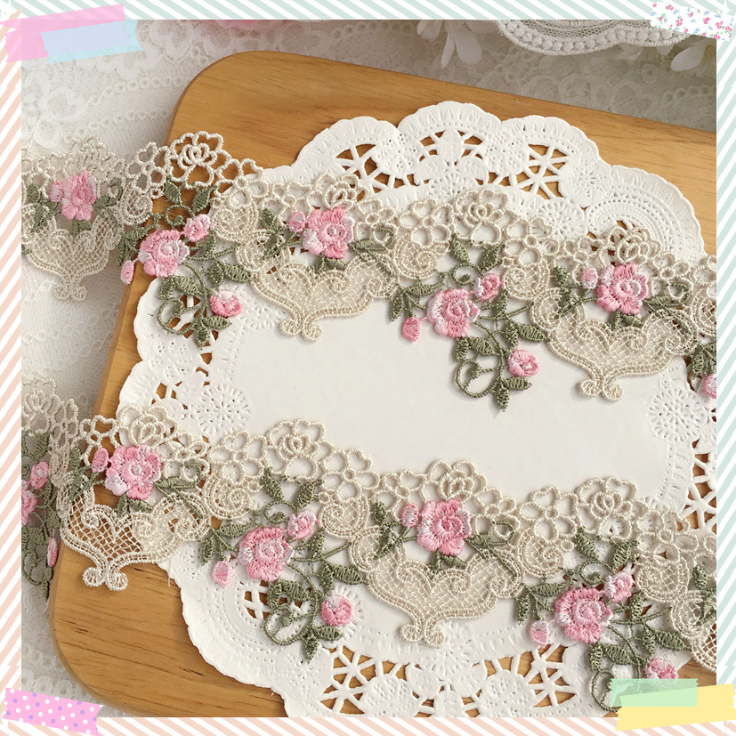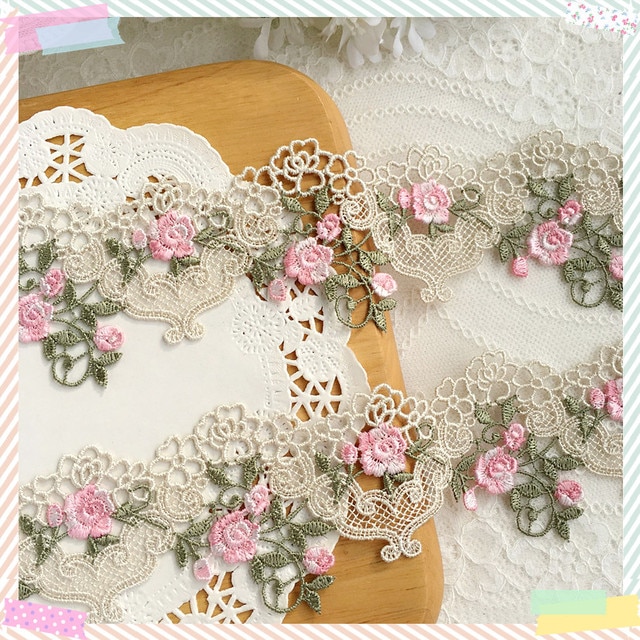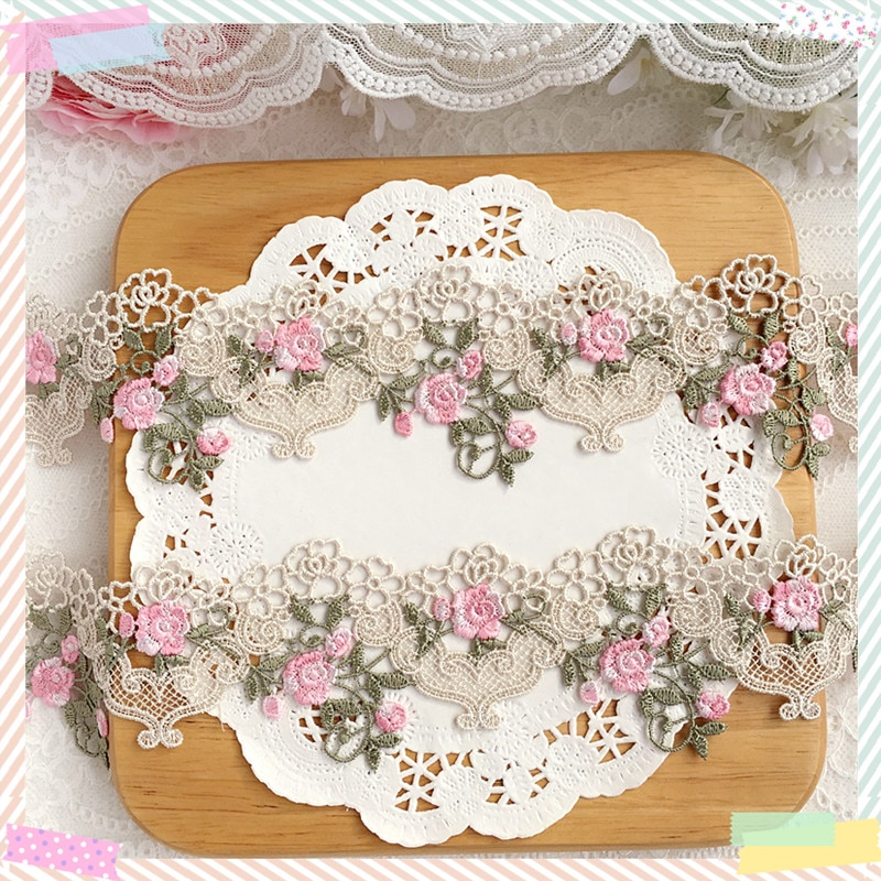 1 ярд, 6 см, широкая розовая и зеленая кружевная отделка, Крафтовая Цветочная Полиэстеровая кружевная ткань, венецианская Цветочная вышитая декоративная кружевная лента с аппликацией