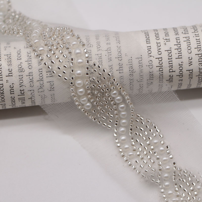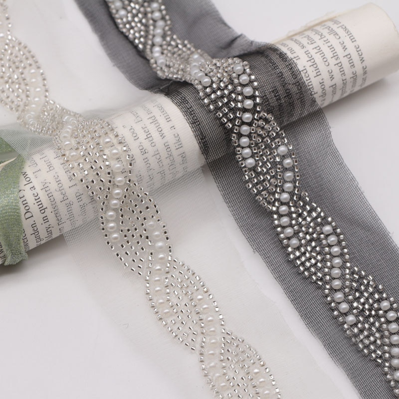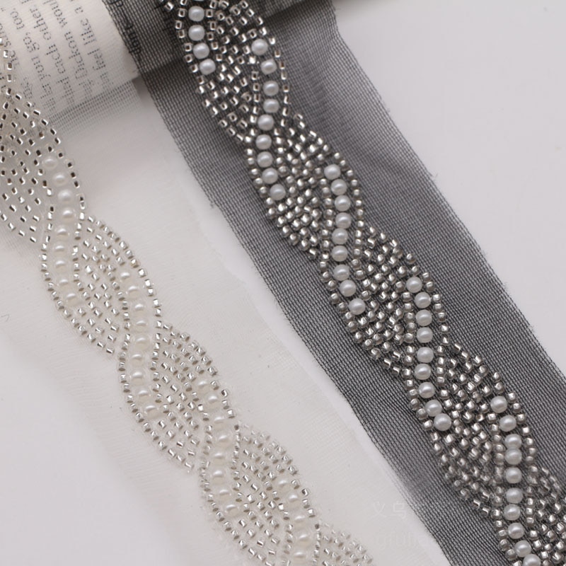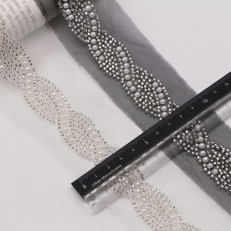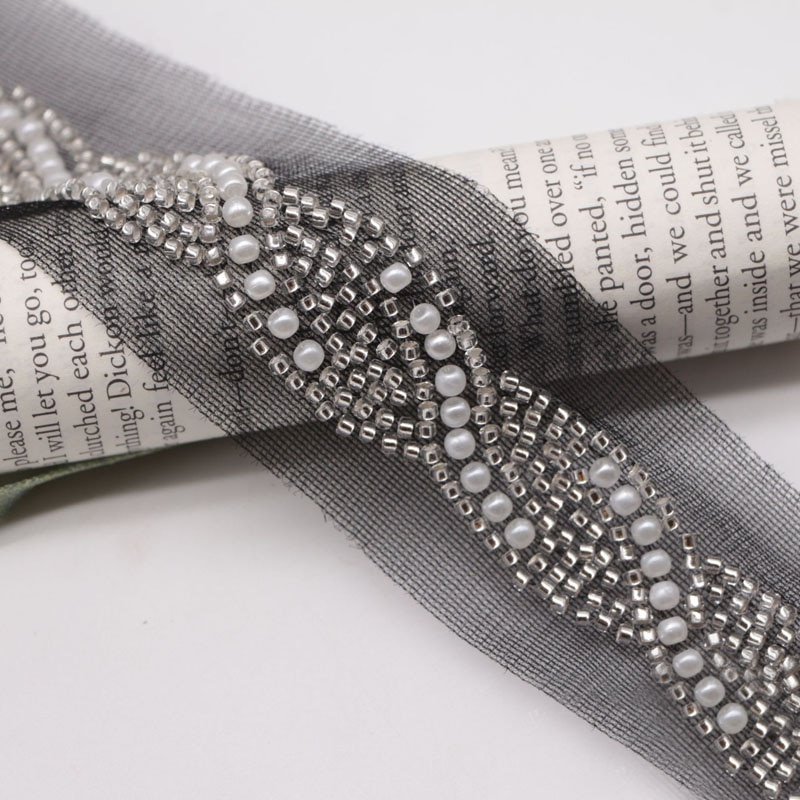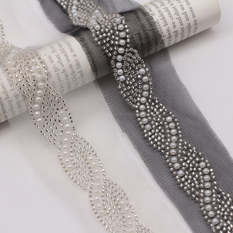1 ярд Белая Черная Тесьма вышитые бусины кружевная отделка 2 см широкий Жемчуг вышитый бисером пришить сетчатую ленту для рукоделия Шитье