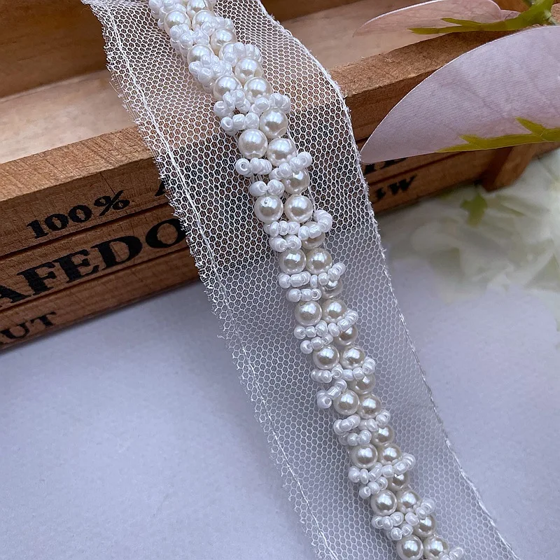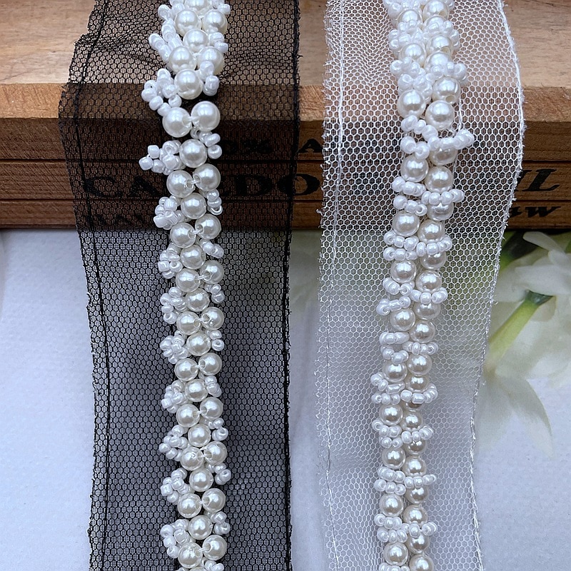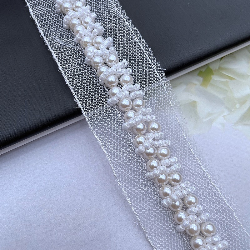 1 ярд, белые жемчужные бусины, вышивка из бисера, сетка, искусственное шитье, аппликация, сделай сам, гипюровая лента, отделка, ремесло, декольте, Декор