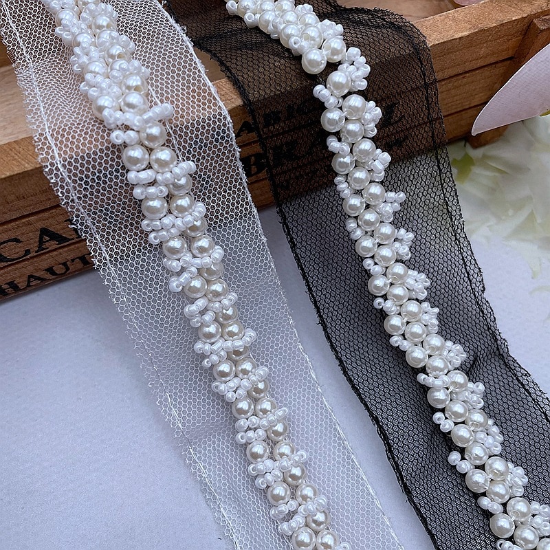 1 ярд белые жемчужные бусины вышивка бисером сетка кружевной воротник тканевый шитье аппликация Сделай Сам гипюр Лента отделка Ремесло Декор декольте
