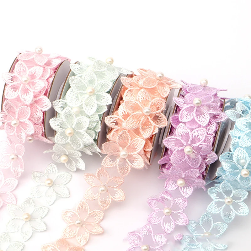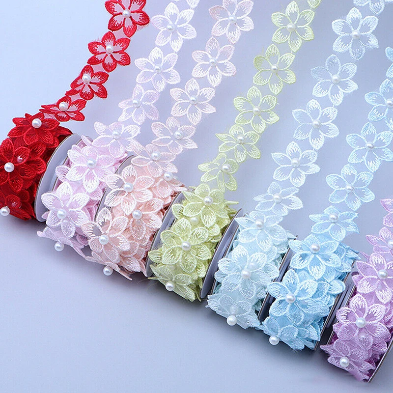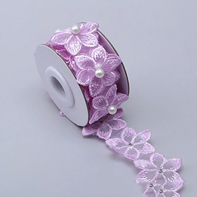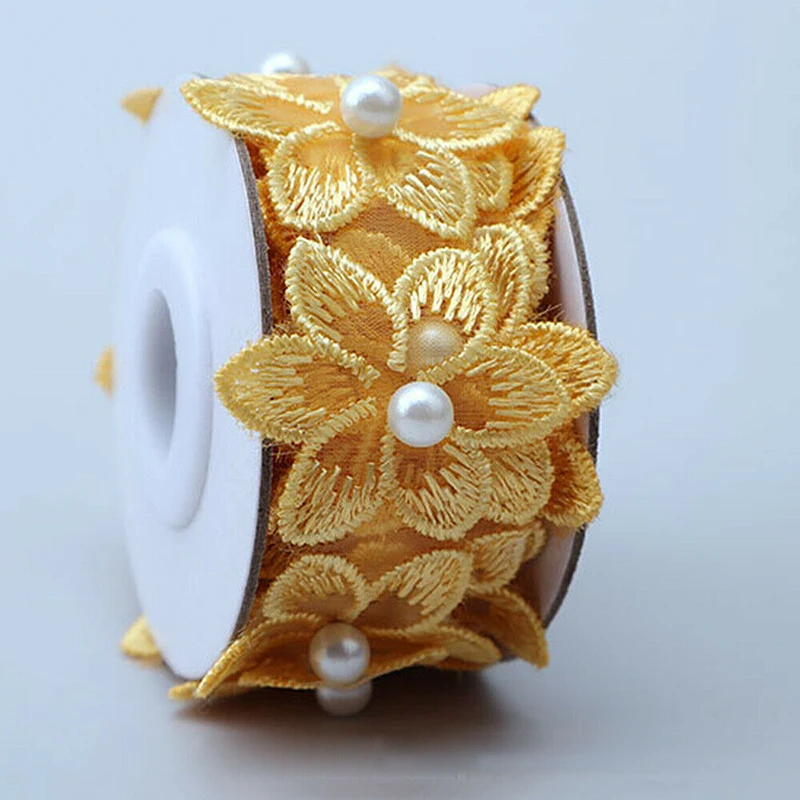 1 ярд Цветочная жемчужная вышитая Цветочная кружевная Лента отделка бисером бахрома кружевная ткань ручная работа платье швейные принадлежности