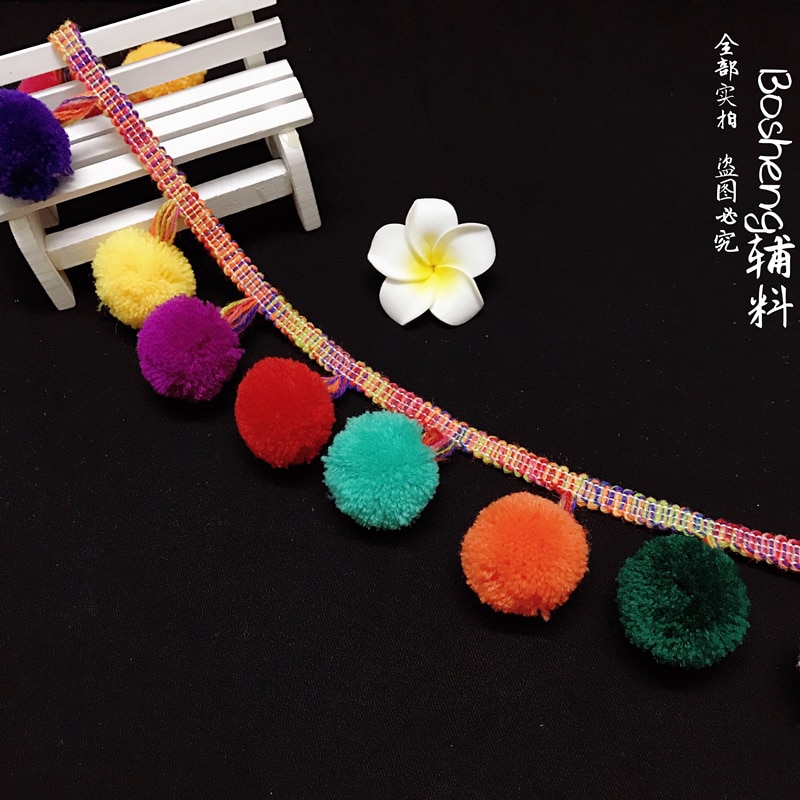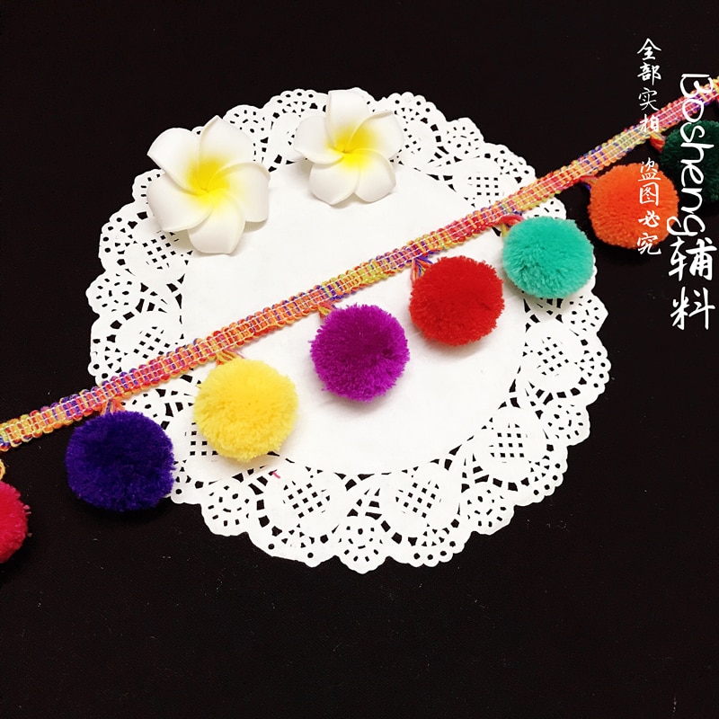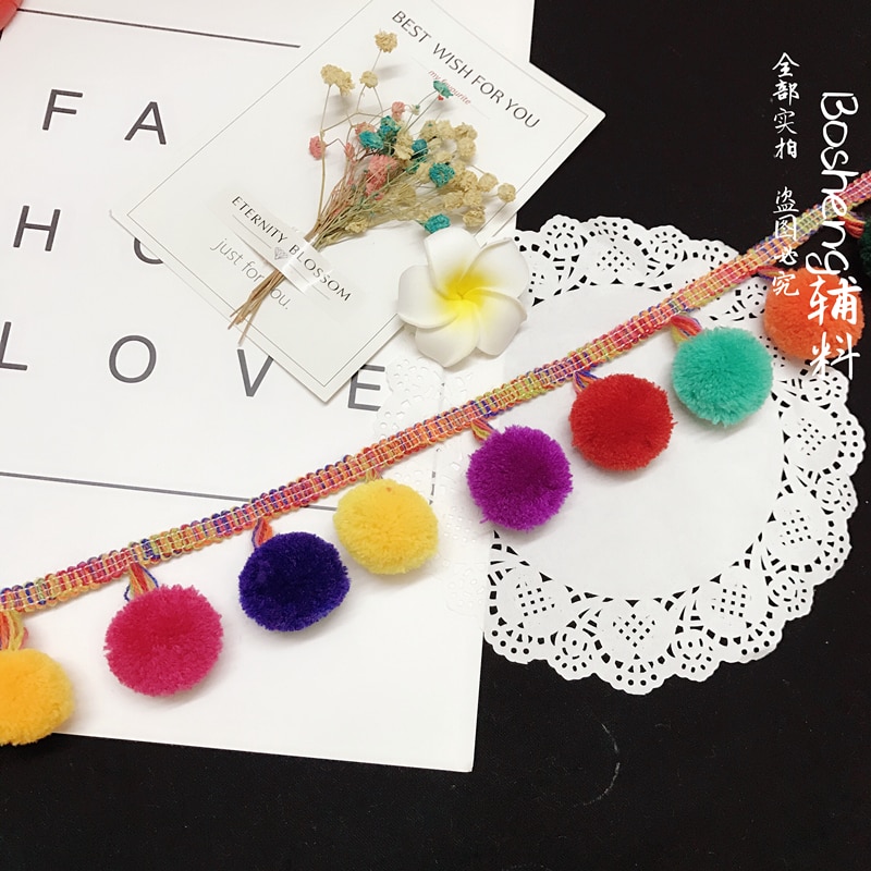 1 ярд Красочные Pom отделка мяч оплетка кружева бахрома ленты Ткань DIY Швейные аксессуары ручной работы