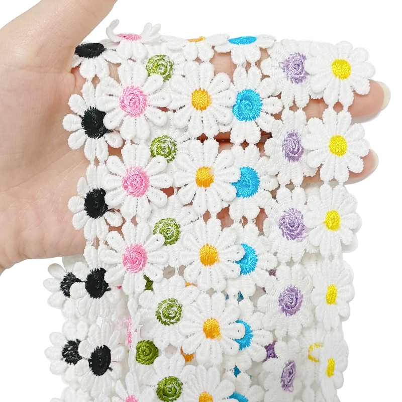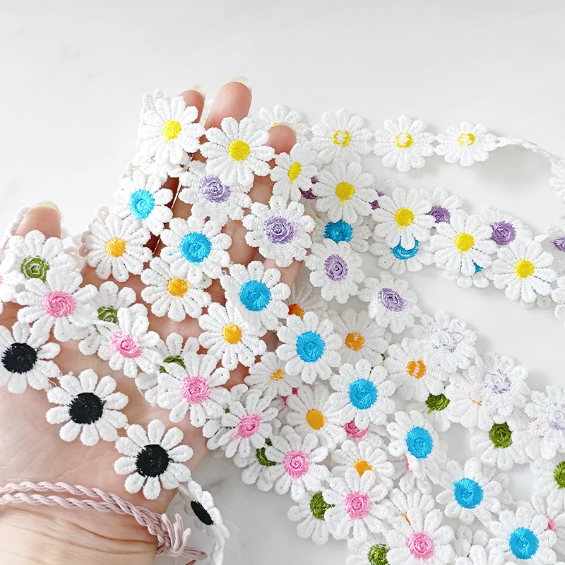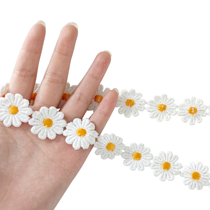1 ярд/лот кружевная отделка маргаритки, белая вышитая кружевная ткань с маргаритками, Лоскутная лента ручной работы, «сделай сам», платье, воротник, шляпы, швейное украшение