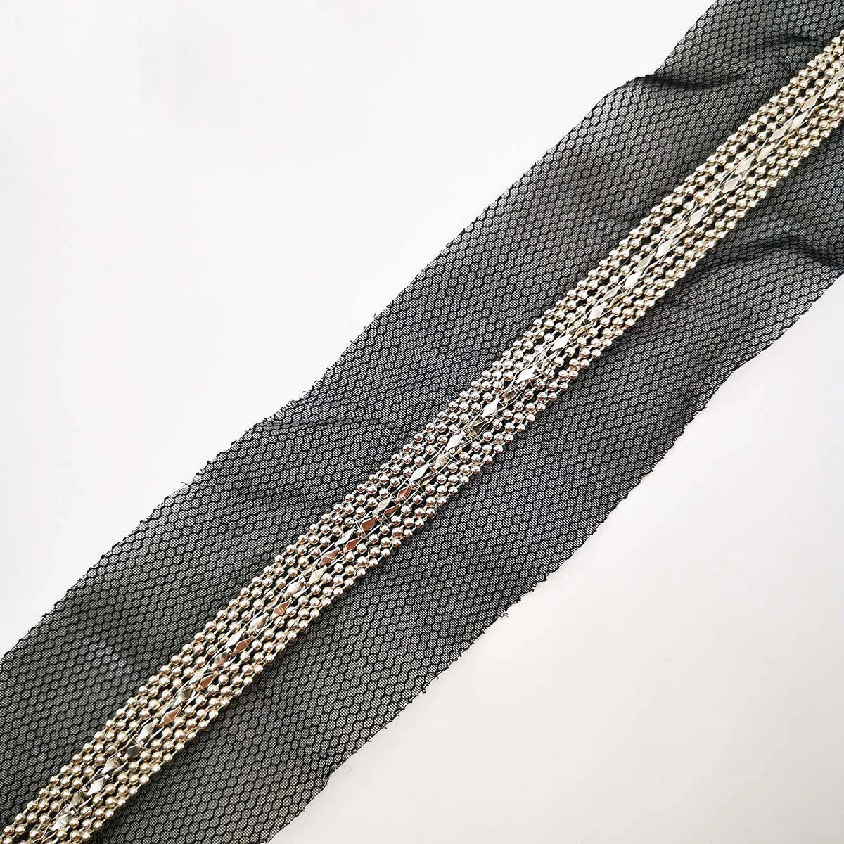 1 ярд, серебряная цепочка с бусинами, черная сетка, кружевная отделка, цепочка с бахромой, «сделай сам», аксессуары для шитья, украшение для одежды, сумок, обуви и шляп