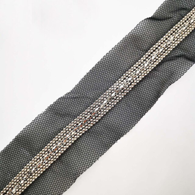 1 ярд Серебряная цепочка из бисера Черная Сетка кружевная отделка цепь бахрома DIY Ремесло Швейные аксессуары сумки для одежды обувь и головные уборы украшения