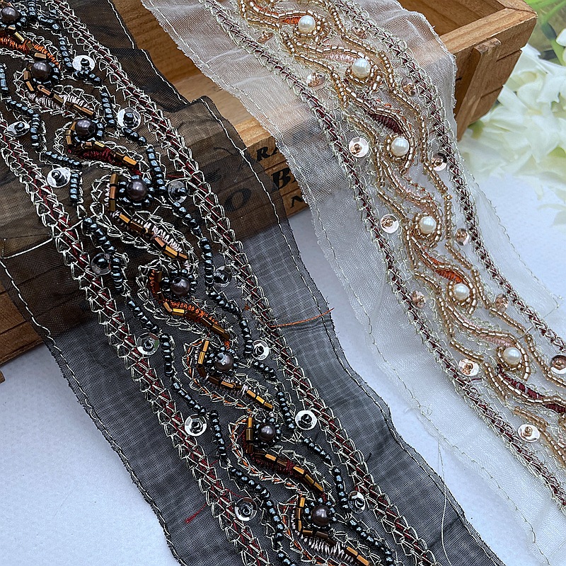 1 ярд Вышивка Бисером кружевная отделка блестками женское шитье своими руками принадлежности для одежды платья дизайнерская ткань 6 см в ширину