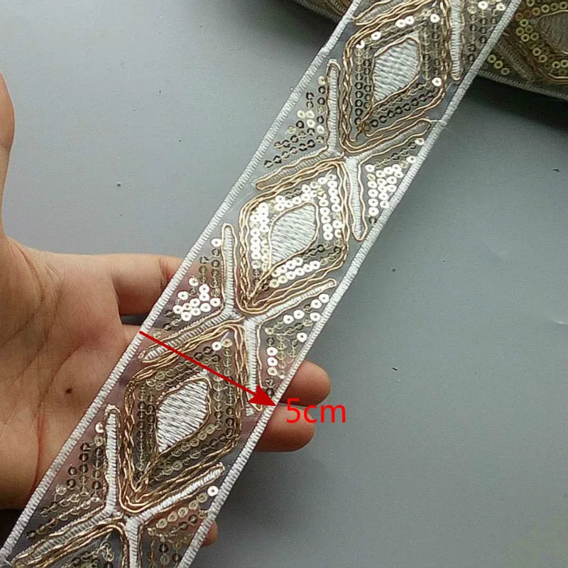 1 ярдов белого и черного цвета 45 мм Этническая золотая нить пайетки тесьма лента для обуви платье вышитая кружевная отделка Аксессуары для шитья «сделай сам»