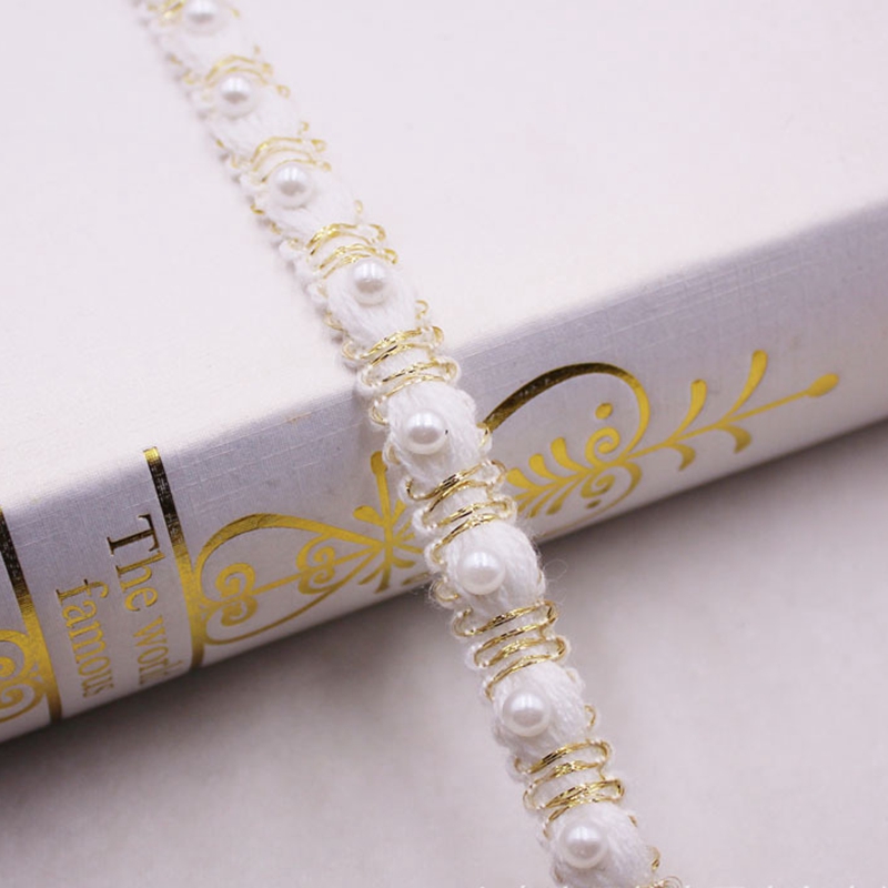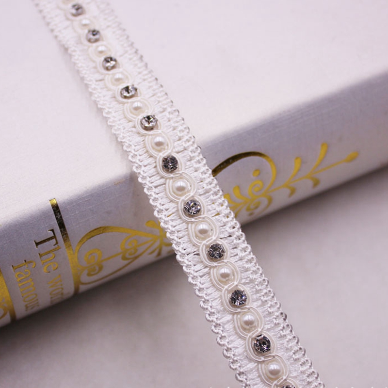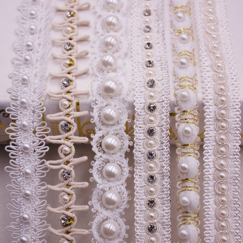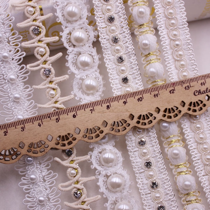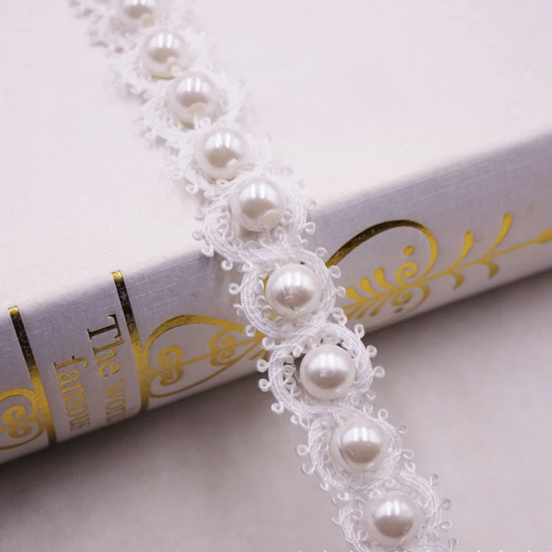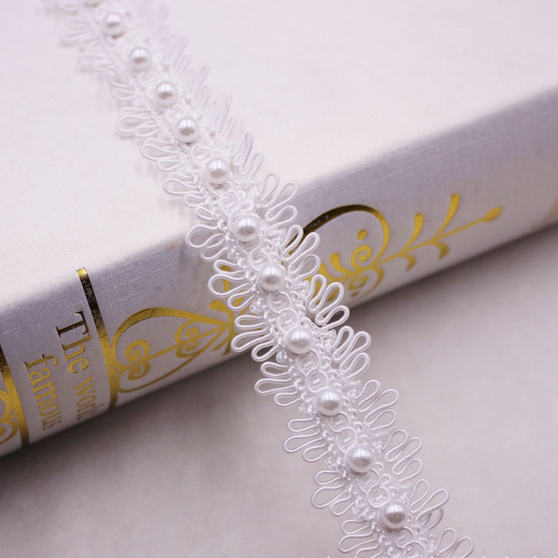 1yards White Pearl Beaded Lace Ribbon Lace Trim Tape Fabric Ribbon Beaded Fringe Handmade Sewing Materials Clothing Accessories