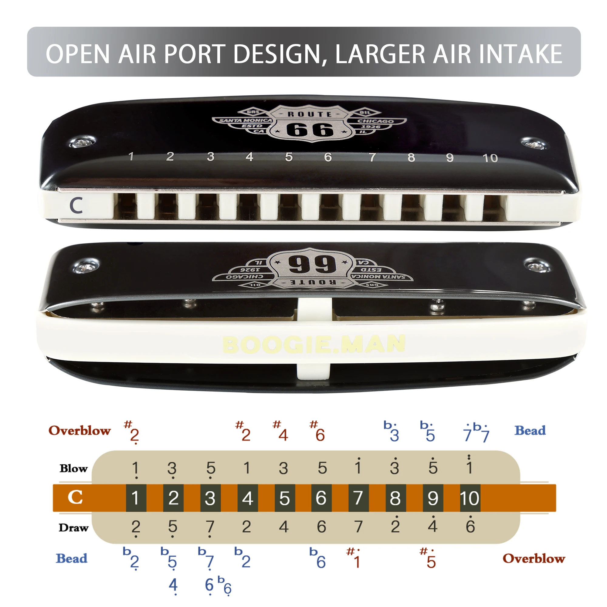 10-отверстие диатоническая гармоника KONGSHENG Route 66, черная крышка