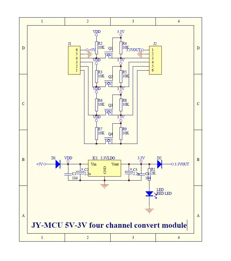 1. Четыре МОП-транзистора обеспечивают двунаправленное преобразование уровней 3 В и 5 В,