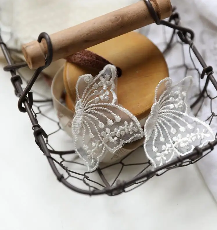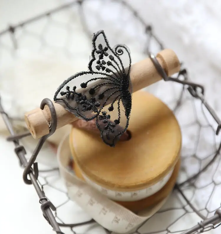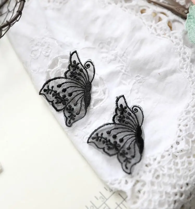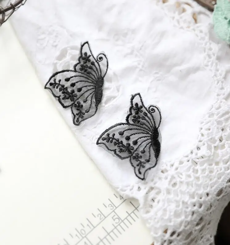 10 шт. 4,3*6,5 см новая стильная текстильная спортивная обувь Довольно с украшением в форме бабочки; Цвет Черный цвет слоновой кости кружева патч аппликация кружево для поделок из ткани