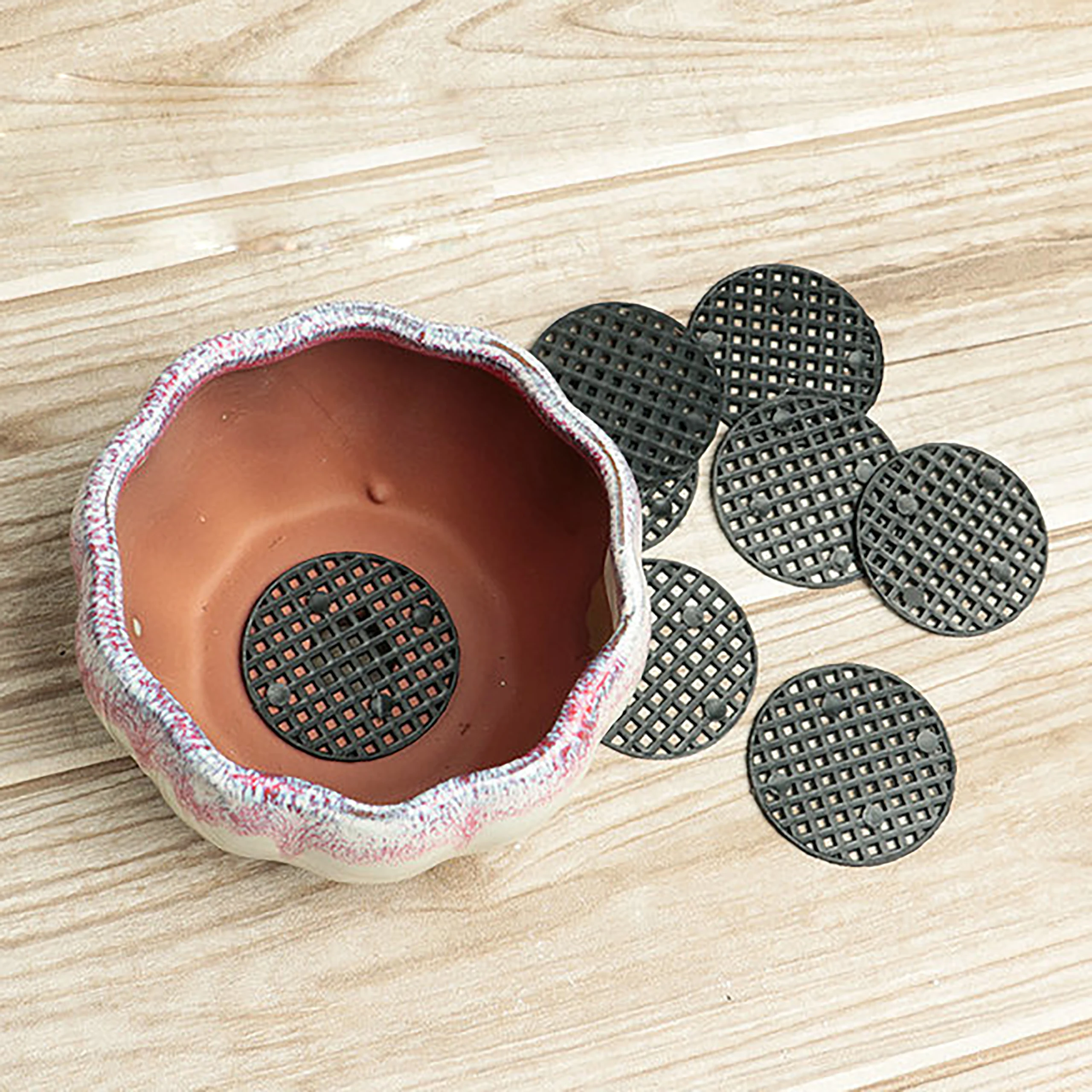 10 шт., 7,5/4,5/2,5 см, диаметр, круглый цветок, горшок с отверстием, сетка, нижняя накладка для горшка бонсай, сетка, коврик, дренажная сетка, отверстие, экран