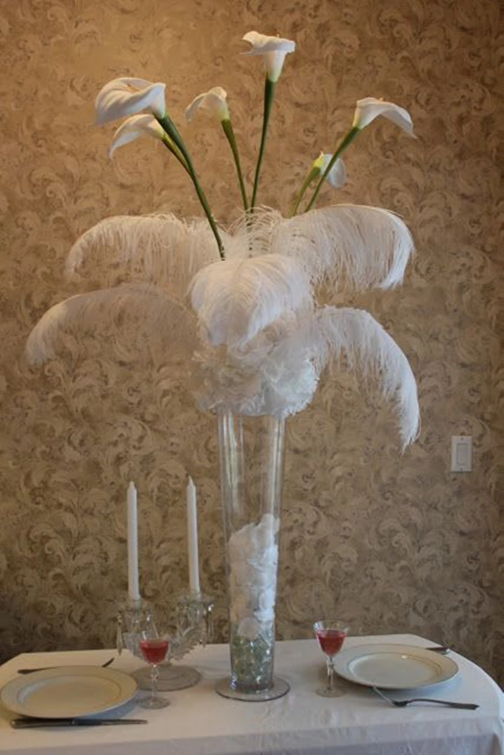 Name 10 PCS White Ostrich Feather Wedding Party Table Centerpiece Decoration plume