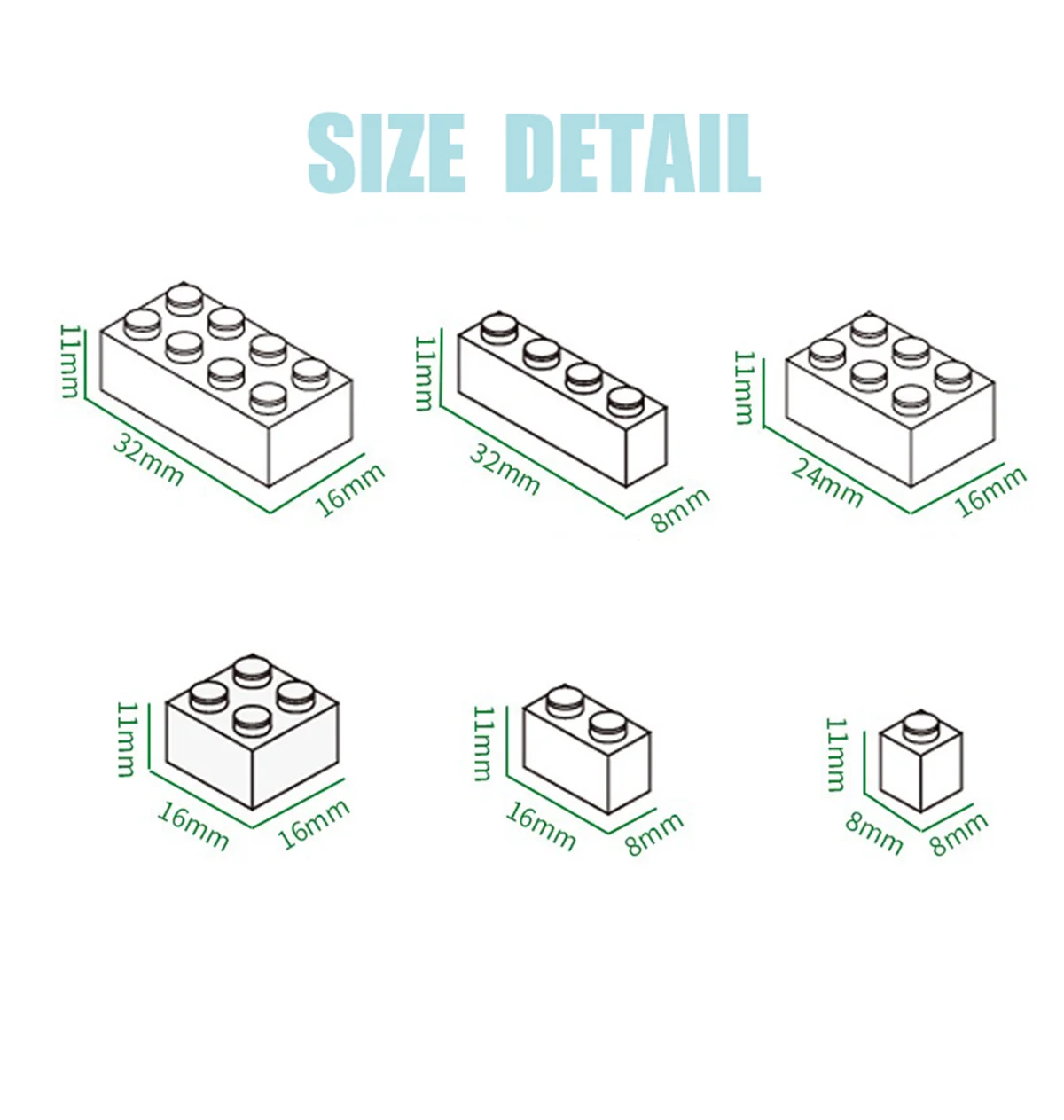 Размер блока Небольшой строительный блок (совместим с Lego)