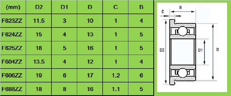 Model F623ZZ F624ZZ F604ZZ F606ZZ F625ZZ F688ZZ