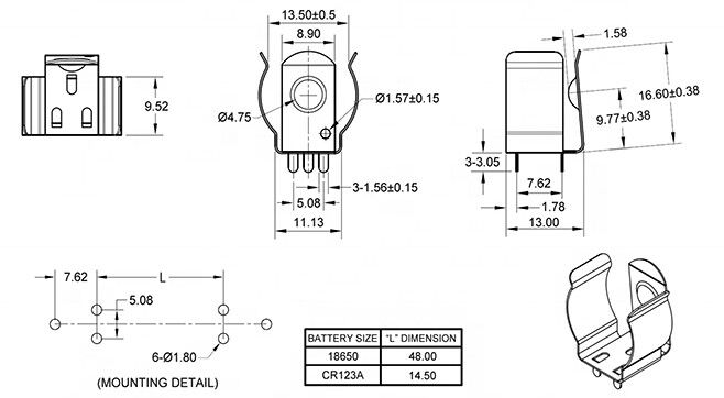 <span class="SnowProductCharacteristics_SnowProductCharacteristicsItem__titleContent__wuy72">Material</span> Spring Steel 18650 Battery Holder Clip