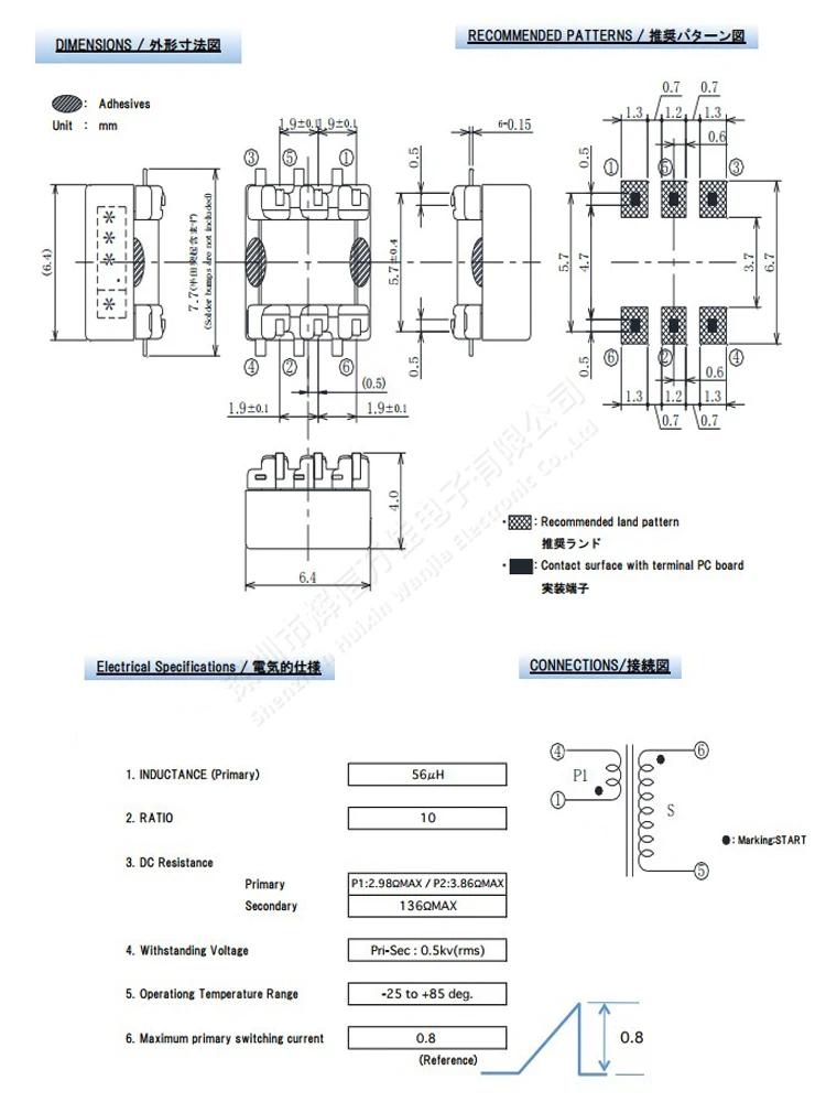 10 шт./импортный SMD EE5.0 Micro 1:10 0.8A изоляционный Высокочастотный импульсный сигнальный трансформатор для фонарика EE0504S