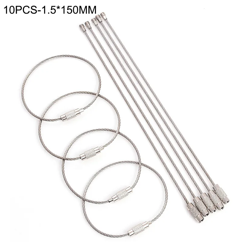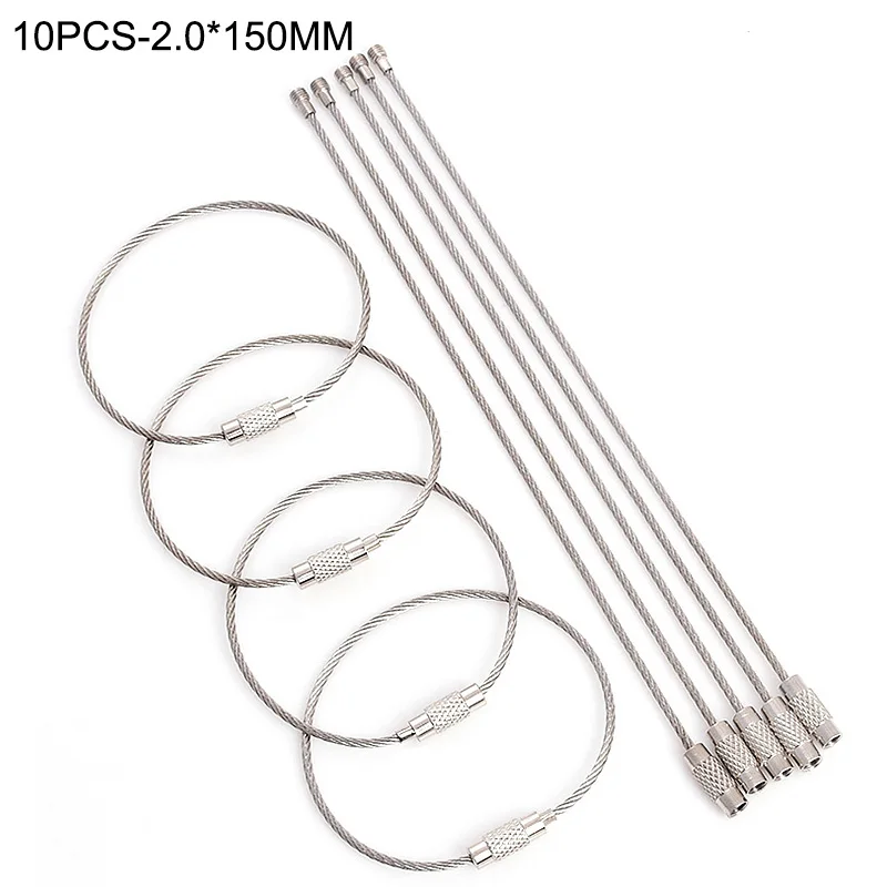 10 шт./компл. 100/150/200 мм брелок тег веревка из нержавеющей стали EDC трос петля винт устройство блокировки кольцо брелок DIY ручные инструменты