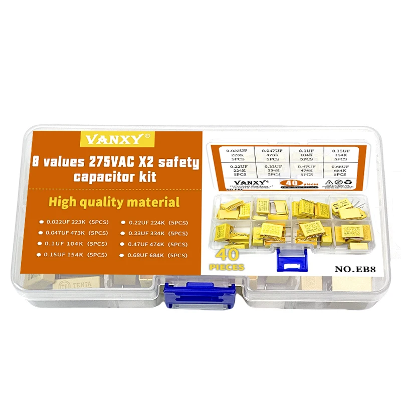 10 шт., конденсатор 275VAC серии X2, 0,01 UF ~ 2,2 UF, полипропиленовый пленочный конденсатор, новый 10nf 100nf 150nf 200nf 680nf 470nf 1UF