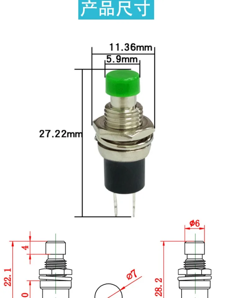 10 шт., Маленький кнопочный переключатель с кабелем, открывающийся 7 мм