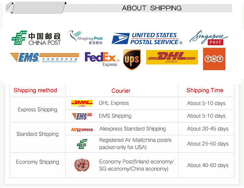 3: Мы поддерживаем различные виды транспорта, почтовые пакеты Гонконга и Китая, федеральные EMS.DHL. UPS и TNT могут полностью удовлетворить различные потребности покупателя.