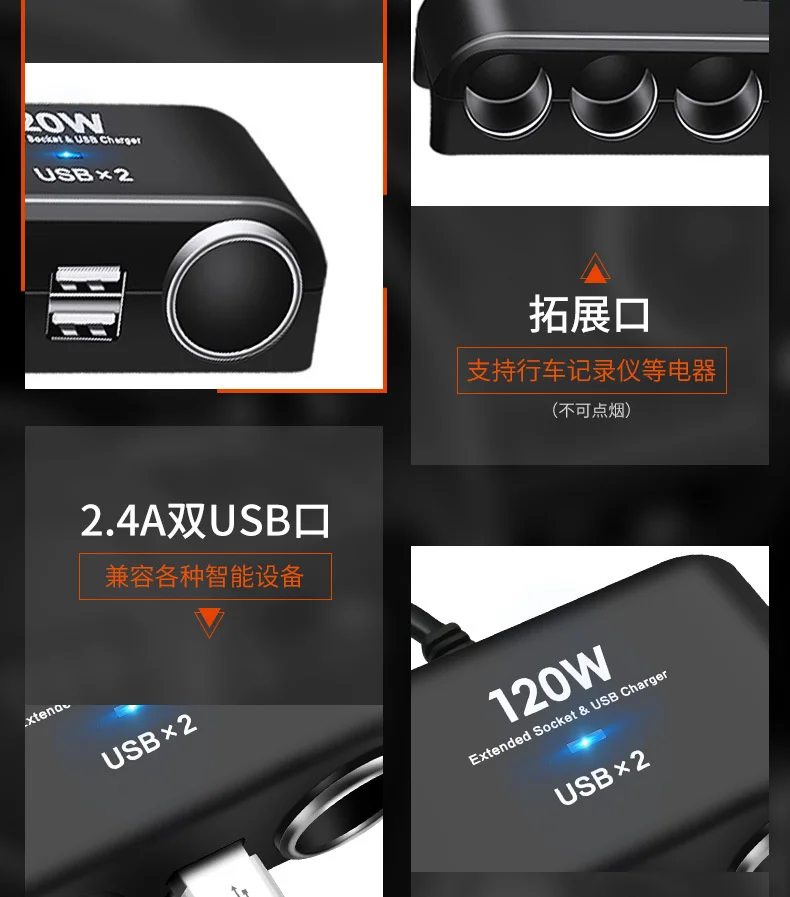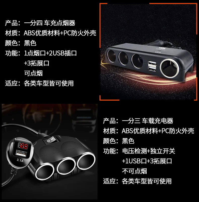 10 шт. прикуриватель один-четыре, двойной USB распределитель питания один-четыре автомобиля, автомобильное зарядное устройство может светильник сигареты оптом