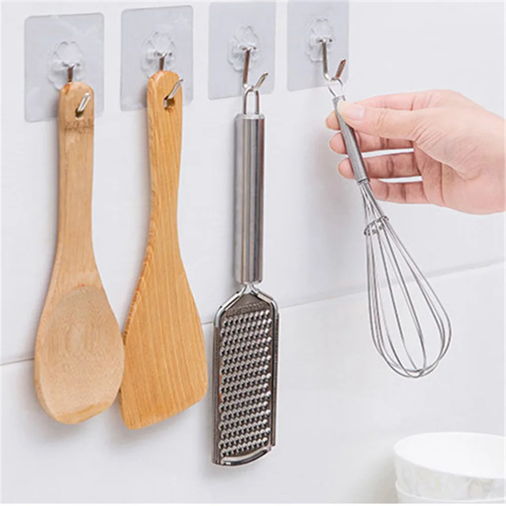 10 шт. прозрачные прочные самоклеящиеся крючки из нержавеющей стали, вешалка для хранения ключей для кухни, ванной, двери, стены, многофункциональная