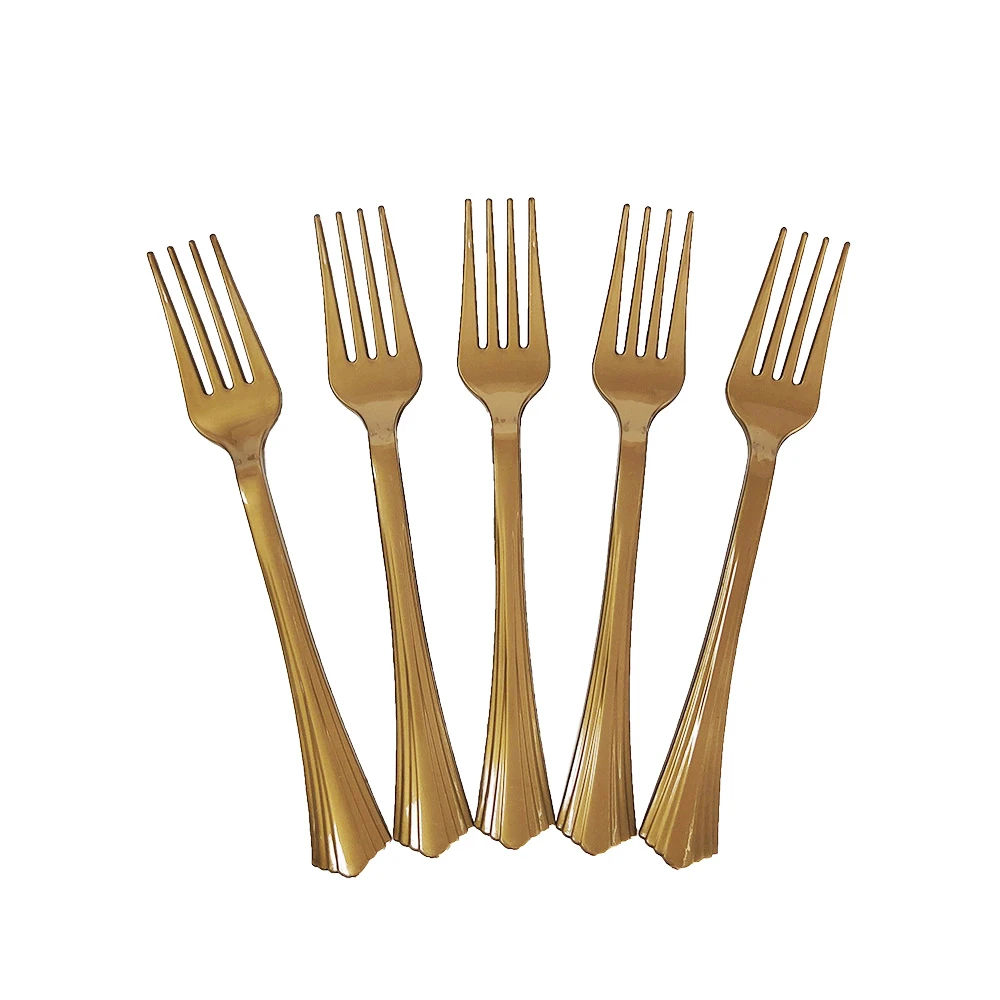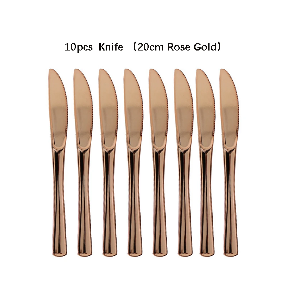 10 шт., Золотая одноразовая посуда, пластиковые Десертные ножи, вилки, ложка для свадьбы, дня рождения, украшения, принадлежности, набор столовых приборов