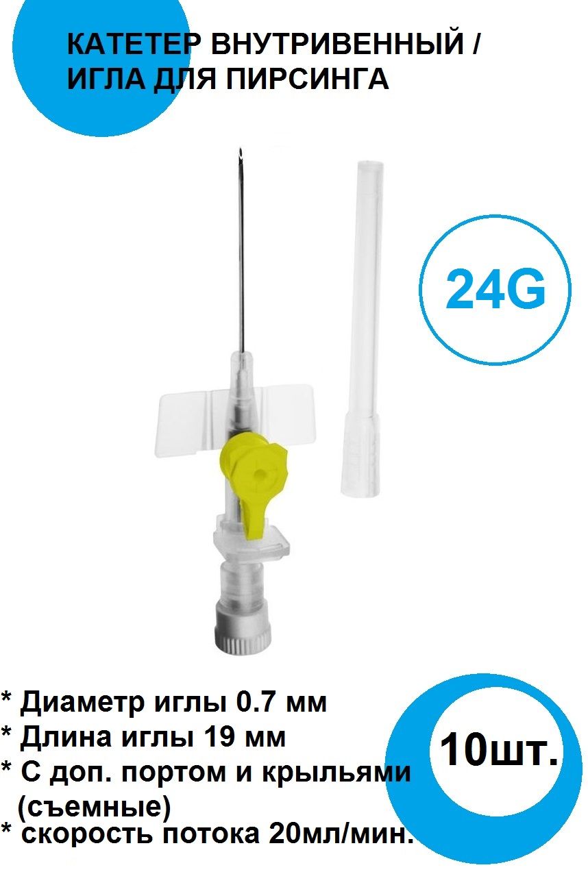 10 штук Катетер периферический внутривенный 24G, игла для пирсинга POLYFLON, Индия