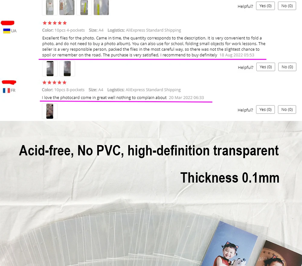 4.[HD Прозрачный]: рукава для пополнения фотоальбома, толщина 100 мкм, с использованием высококачественного полипропиленового пластика, высокой четкости.