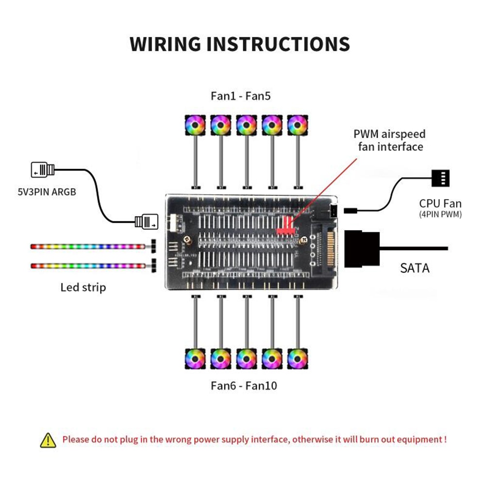 10-в-1 ARGB кабельный разветвитель концентратор контроль температуры контроллер ARGB охлаждающий вентилятор концентратор адаптер синхронизация для корпуса ПК