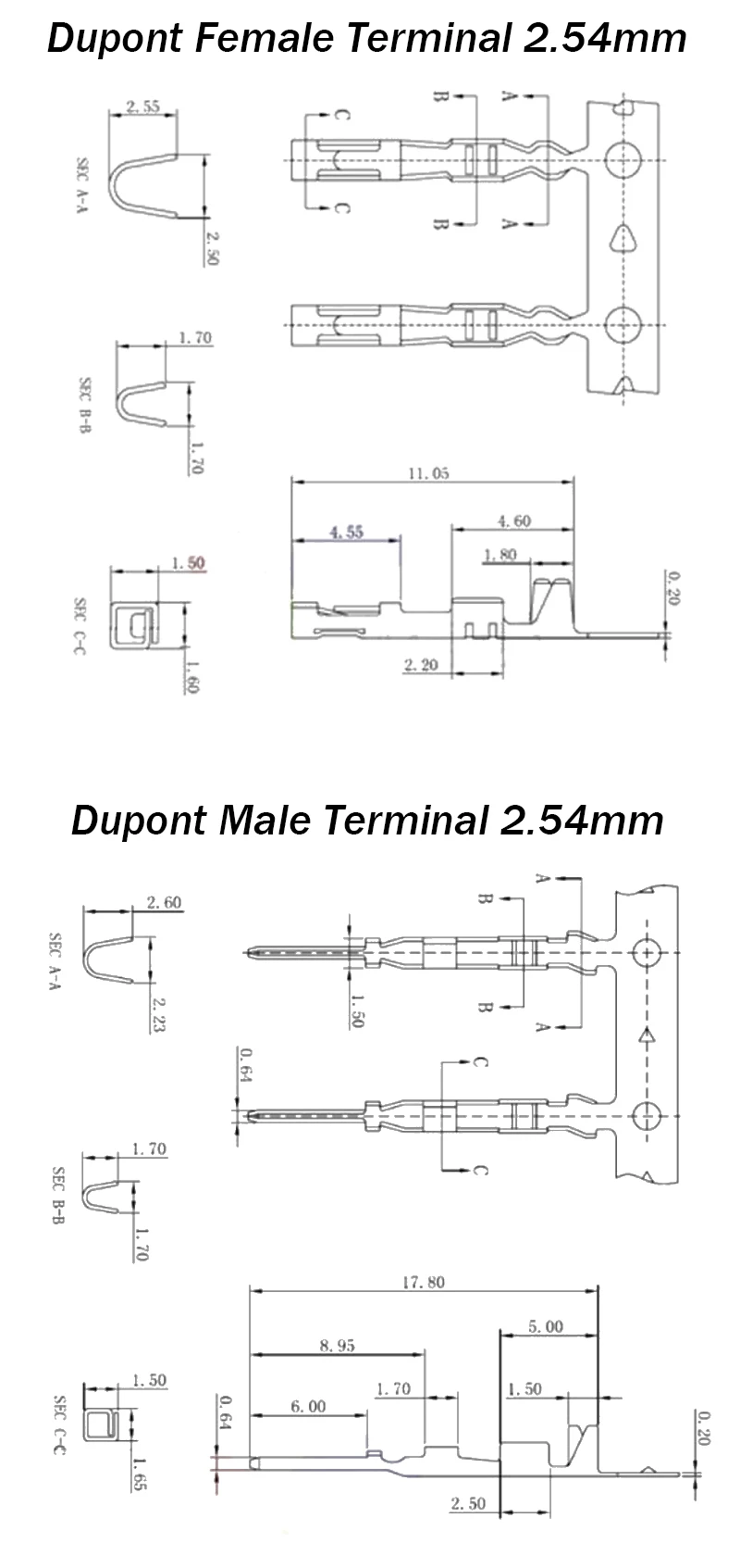 Model Number Dupont Male Female Terminals