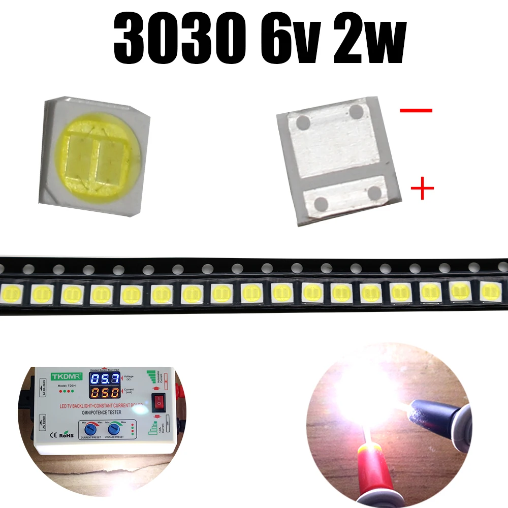 100/50 шт., светодиодная подсветка высокой мощности, 2 Вт, 3030, 6 в, точный ток-ма