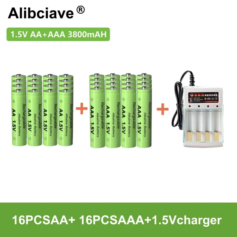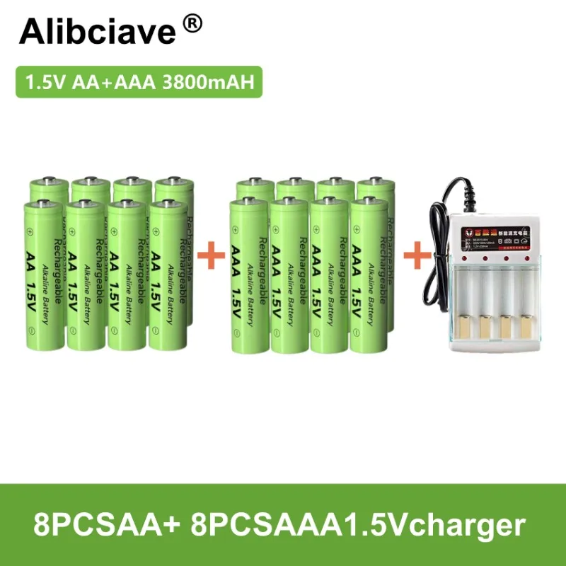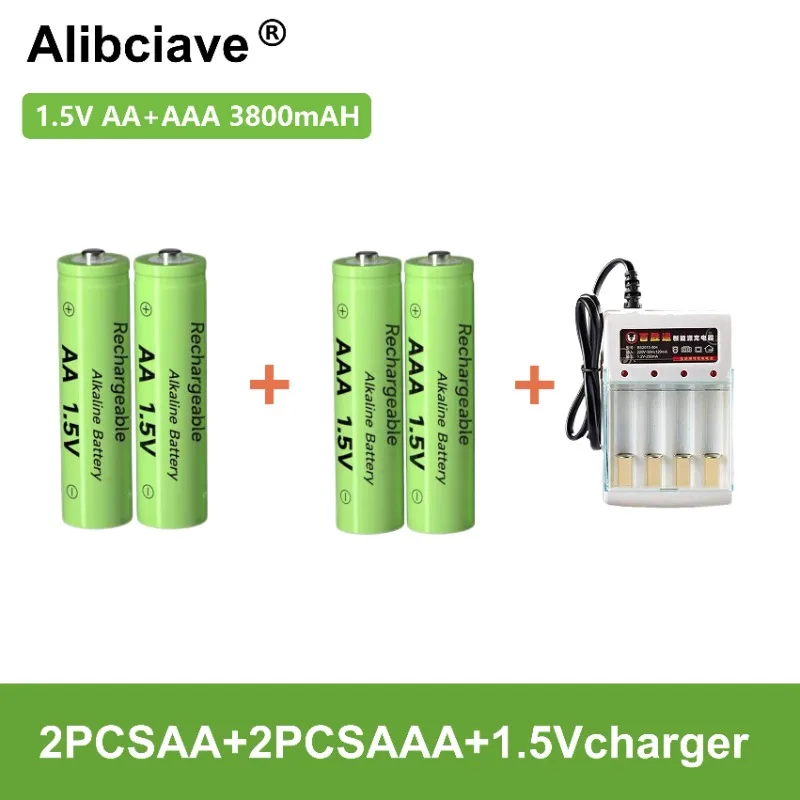 100% оригинальный 1,5 в AAA + AA + Автомобильный перезаряжаемый аккумулятор 3800 мАч Ni-MH 1,5 В Аккумулятор для часов, мышей, компьютеров, игрушек и т. д. + зарядка