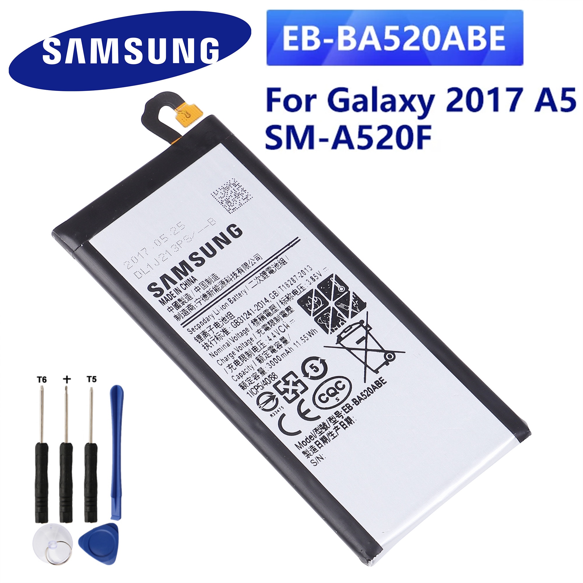 100% Оригинальный аккумулятор EB-BA520ABE для Samsung GALAXY A5 2017 A520F SM-A520F 2017 версия 3000 мАч