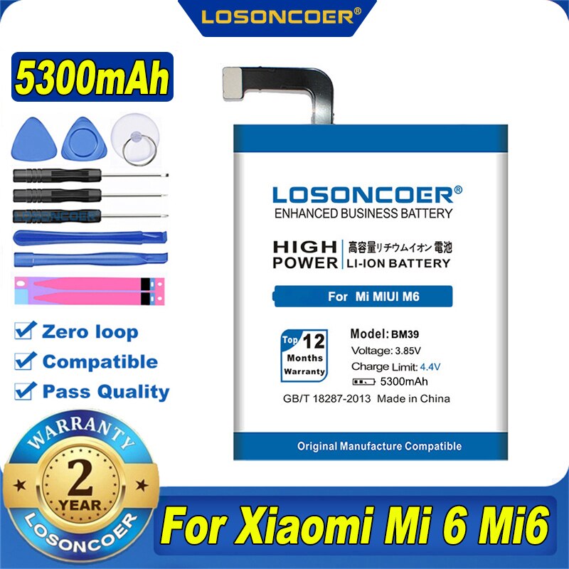 100% оригинал LOSONCOER 5300 мАч BM39 батарея для Xiaomi 6 MIUI M6 Mi6 Mi 6 батареи Бесплатные инструменты