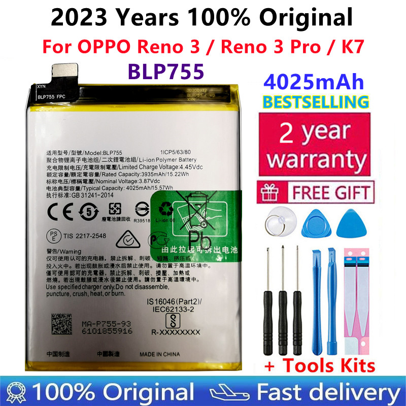 100% оригинальный новый высококачественный 4025 мАч BLP755 Сменный аккумулятор для OPPO K7 Reno 3 Reno3 Pro 5G аккумулятор