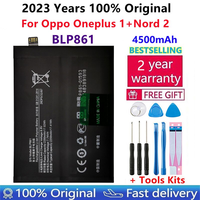 100% оригинальный новый высококачественный аккумулятор BLP861 4500 мАч для телефона OPPO oneplus 1 + nord 2 nord2