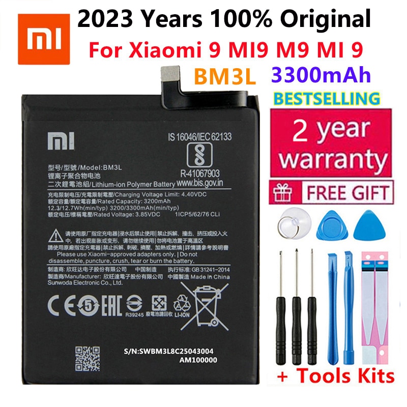100% оригинальный высококачественный Сменный аккумулятор для Xiaomi 9 MI9 M9 MI 9 BM3L Оригинальный аккумулятор для телефона батареи 3300 мАч с инструментами