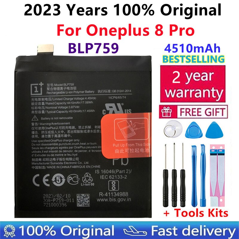 100% оригинальный высококачественный запасной аккумулятор BLP759 4510 мАч для Oneplus 8 Pro Мобильный телефон батареи + инструменты бесплатно