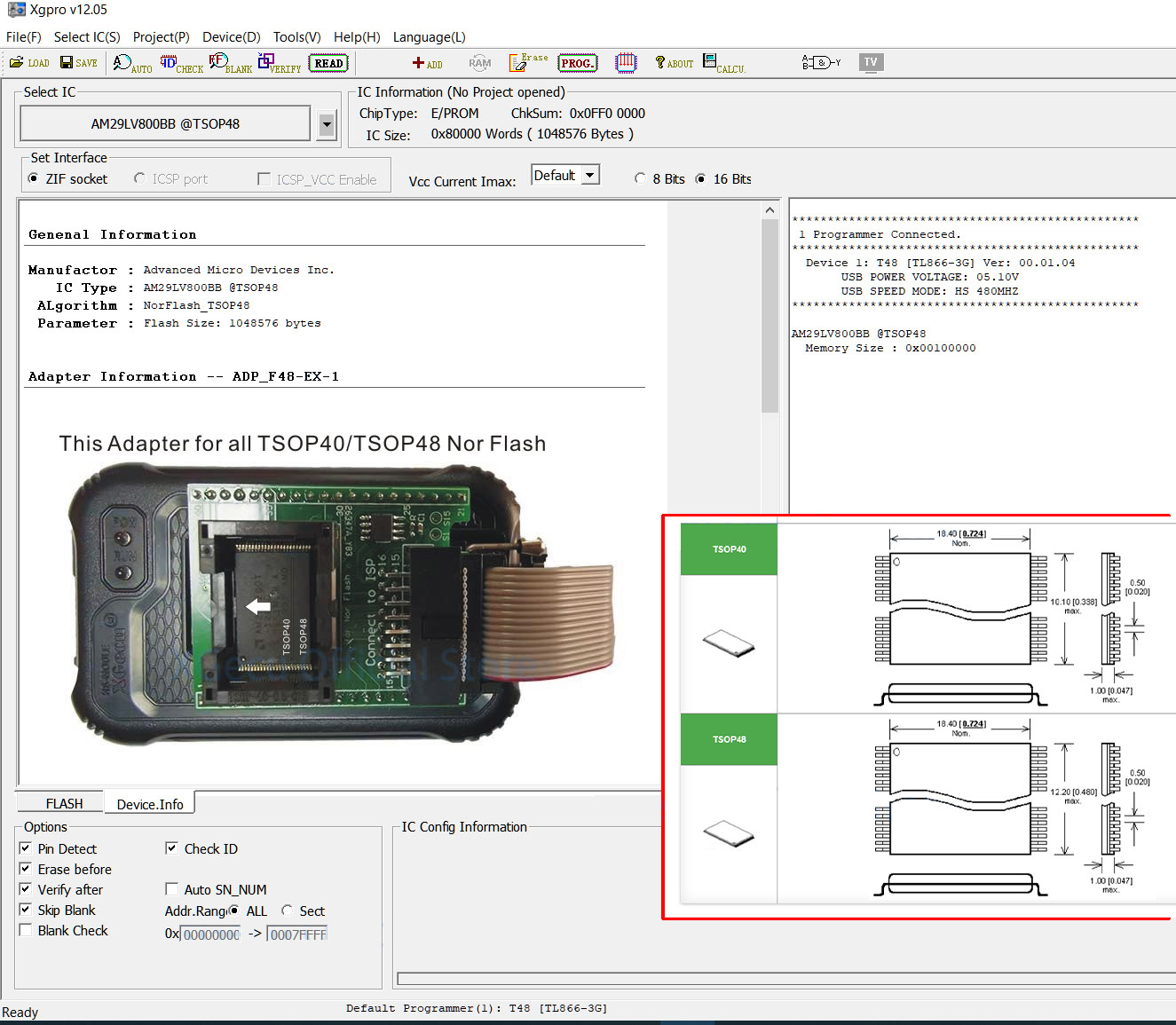 Этот адаптер для всех TSOP40/TSOP48 Nor flash