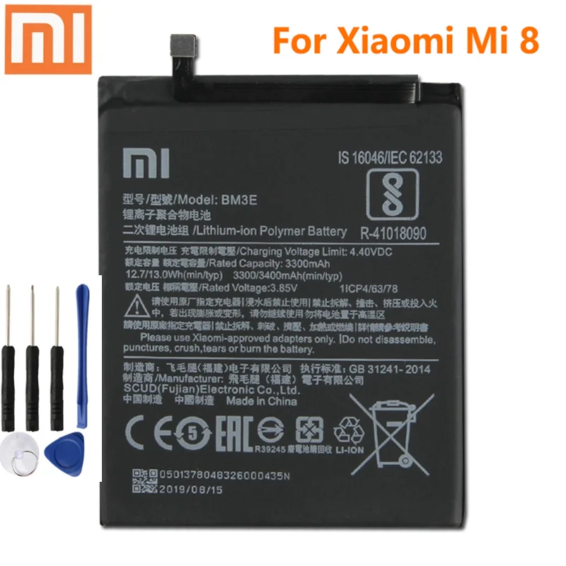 100% Оригинальный Xiao Mi телефон батарея BM3E для Xiaomi Xiaomi8 Mi 8 Mi8 M8 реальные 3400 мАч высокое качество мА/ч. Аккумулятор Bateria + Бесплатные инструменты