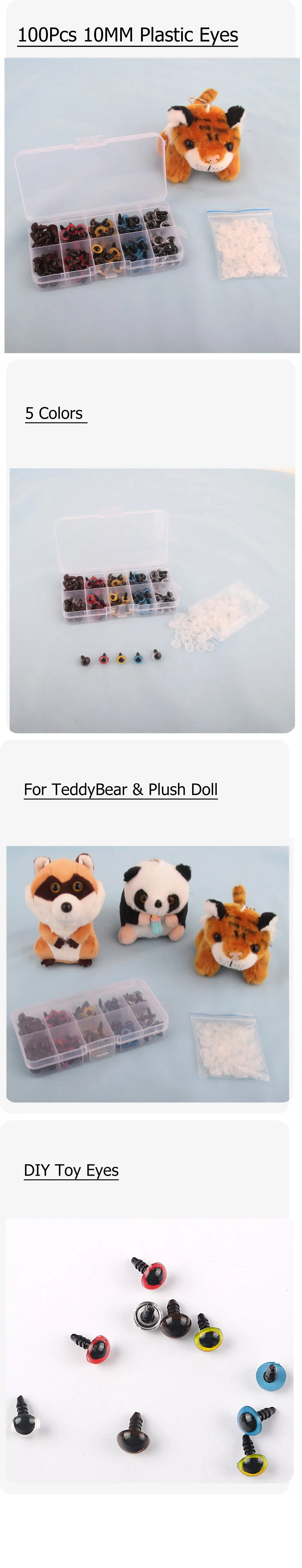 100 шт 10 мм в коробке пластиковый художественный глаз 5 цветов глаза коричневый винт TeddyBear плюшевая кукла DIY игрушка глаза набор