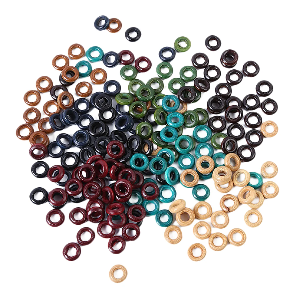 Включает 100 штук цветных деревянных манжетов для волос.