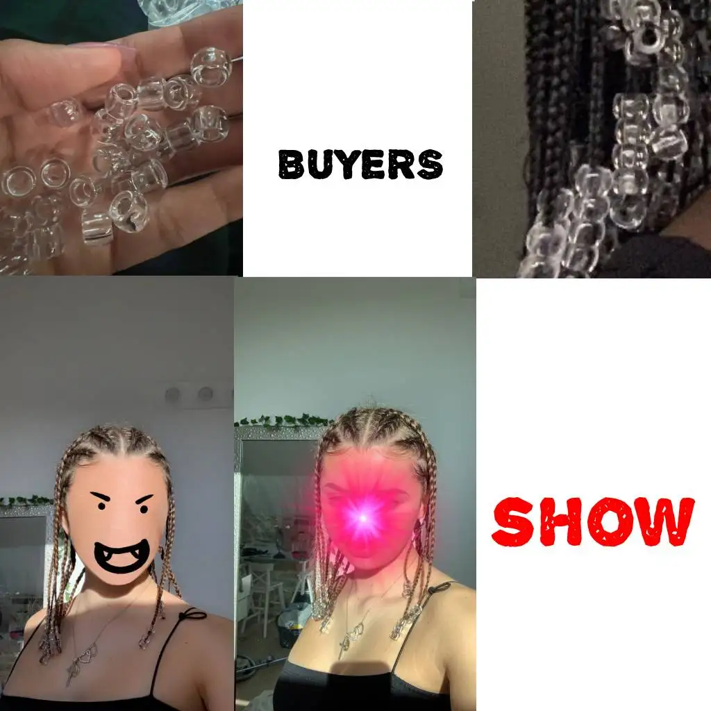 Примечание: Эти бусины не могут быть согнуты и открыты, пожалуйста, используйте крючок, чтобы зафиксировать их на волосах. Маленькие мелкие детали, держите подальше от ребенка.