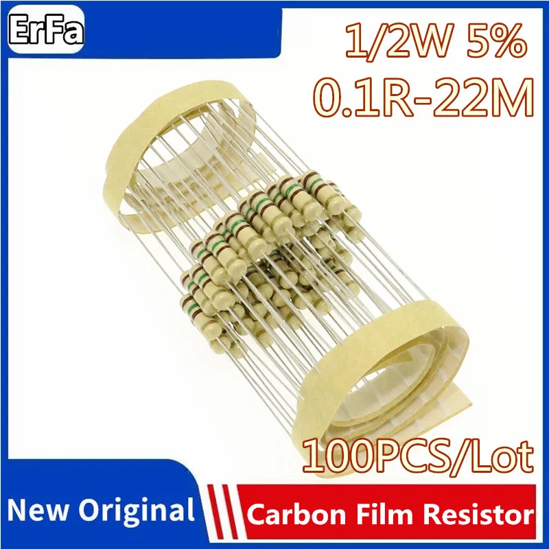 100 шт. карбоновый пленочный резистор 0,5 Вт 1/2 Вт 5% 0R 1.5R 18R 22R 33R 100R 680R 1K 2,2 K 15K 47K 1 2,2 10 18 33 56 110 Ом 150 R ~ 22 м