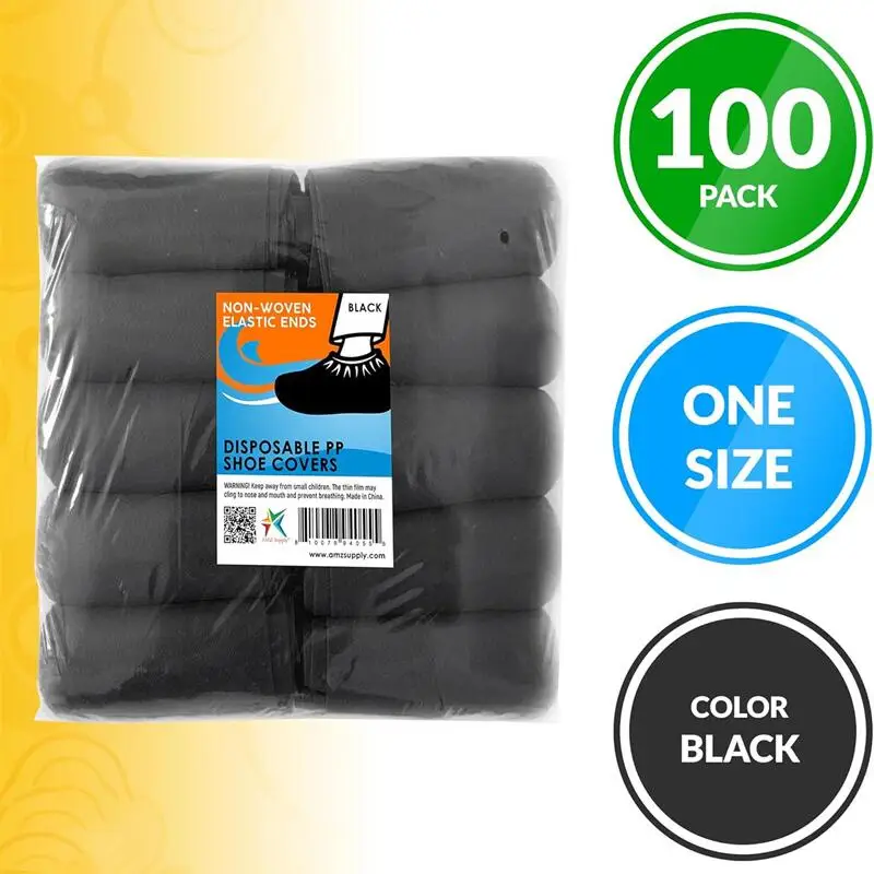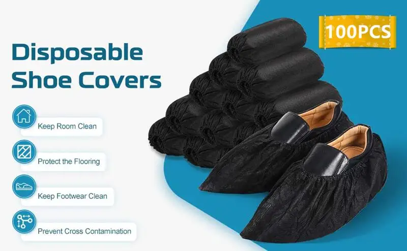 100 шт. Одноразовые ботинки и бахилы черные Нескользящие ботинки большого размера, покрывающие Крытый гостевой посетитель, защита обуви на рабочем месте