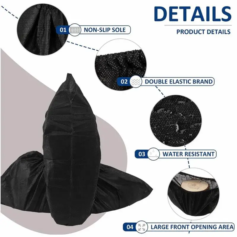 100 шт. одноразовые чехлы для обуви и ботинок, черные Нескользящие ботинки большого размера, закрывающие ботинки для гостей дома, протекторы для обуви для работы